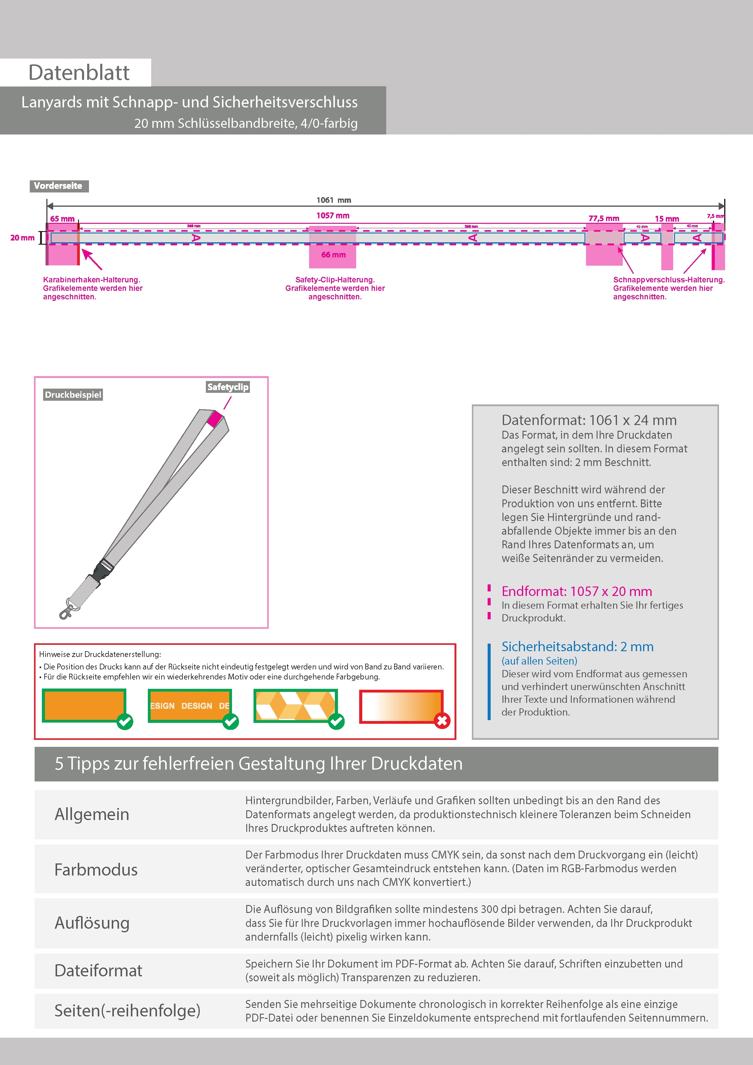 Lanyards mit Schnapp- und Sicherheitsverschluss, 20 mm Schlüsselbandbreite, 4/0-farbig einseitig bedruckt