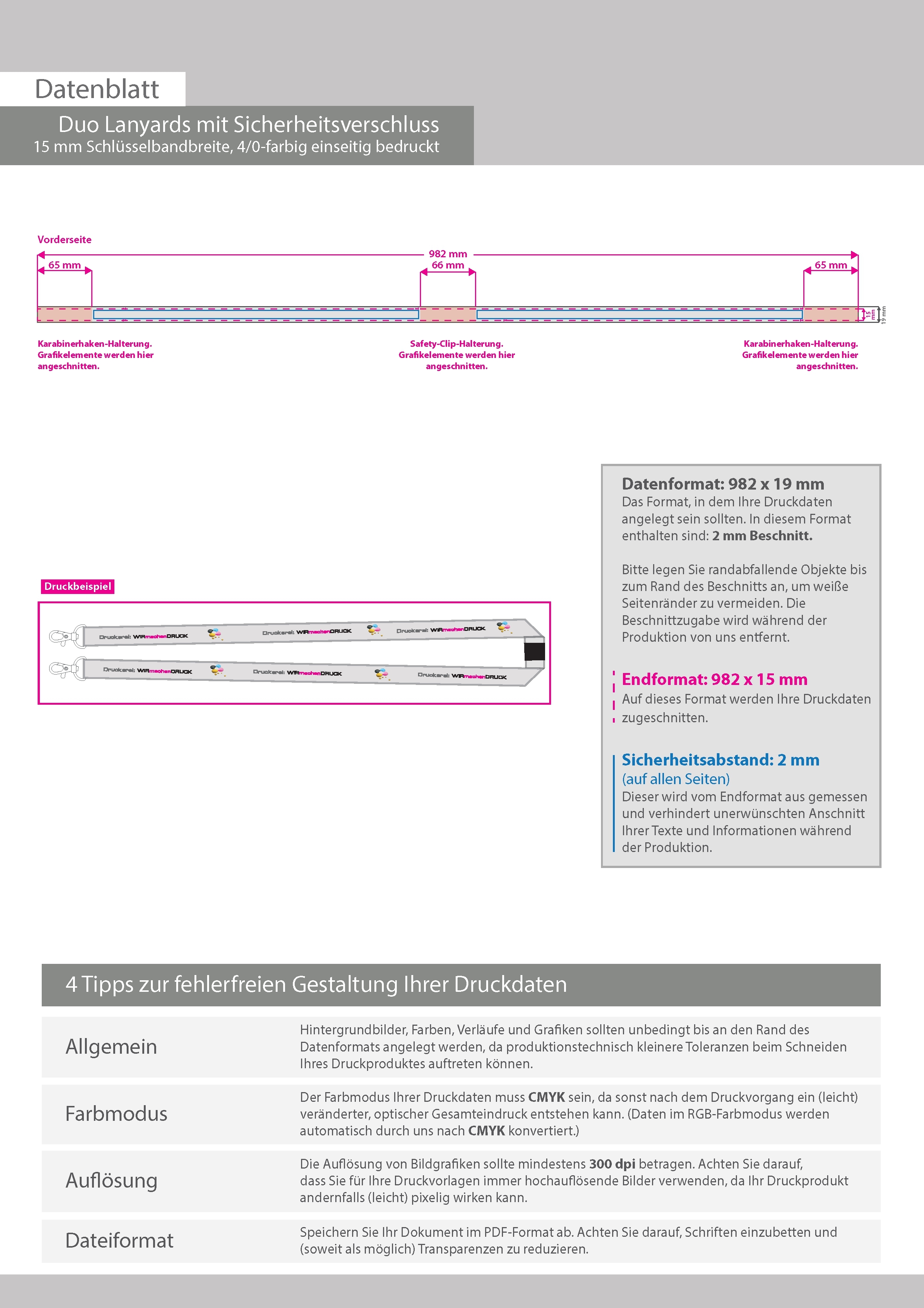 Duo-Lanyards mit Sicherheitsverschluss, 15 mm Schlüsselbandbreite, 4/0-farbig einseitig bedruckt
