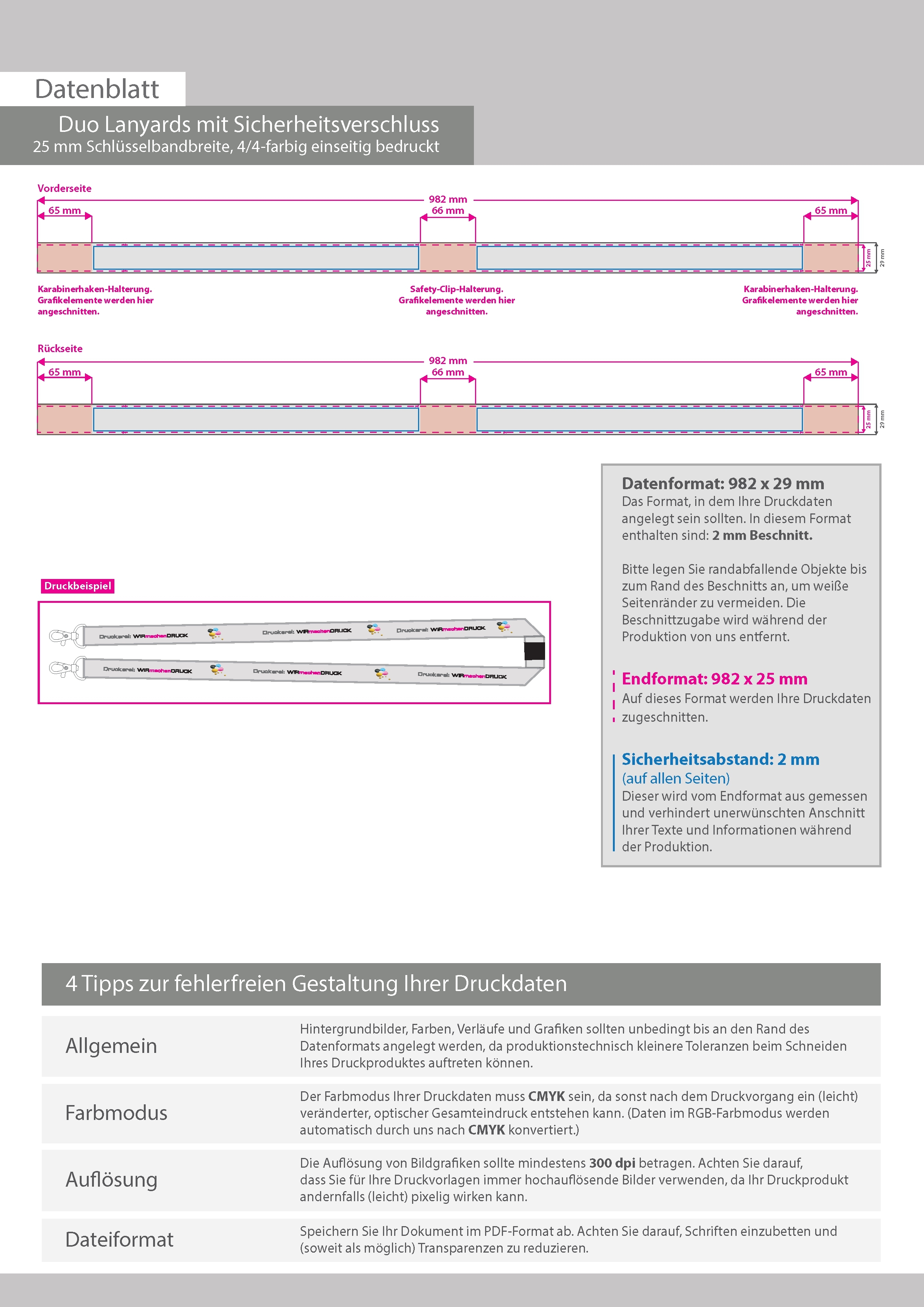 Duo-Lanyards mit Sicherheitsverschluss, 25 mm Schlüsselbandbreite, 4/4-farbig beidseitig bedruckt